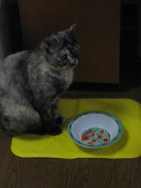 先住猫たちが、仮ママのまわりをウロウロしながらゴハンの催促してるけど、ワタシは違うわ~!!